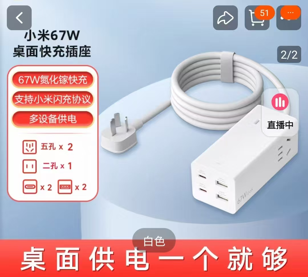 參數(shù) [品牌] 小米 [型號] 57W [單位] 個