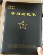 材質(zhì):黑色PU革,不銹鋼活頁夾采用壓印工藝印制“政治理論學(xué)習(xí)筆記本”、“八一五星”、單位三個要素封皮:21*27.2cm