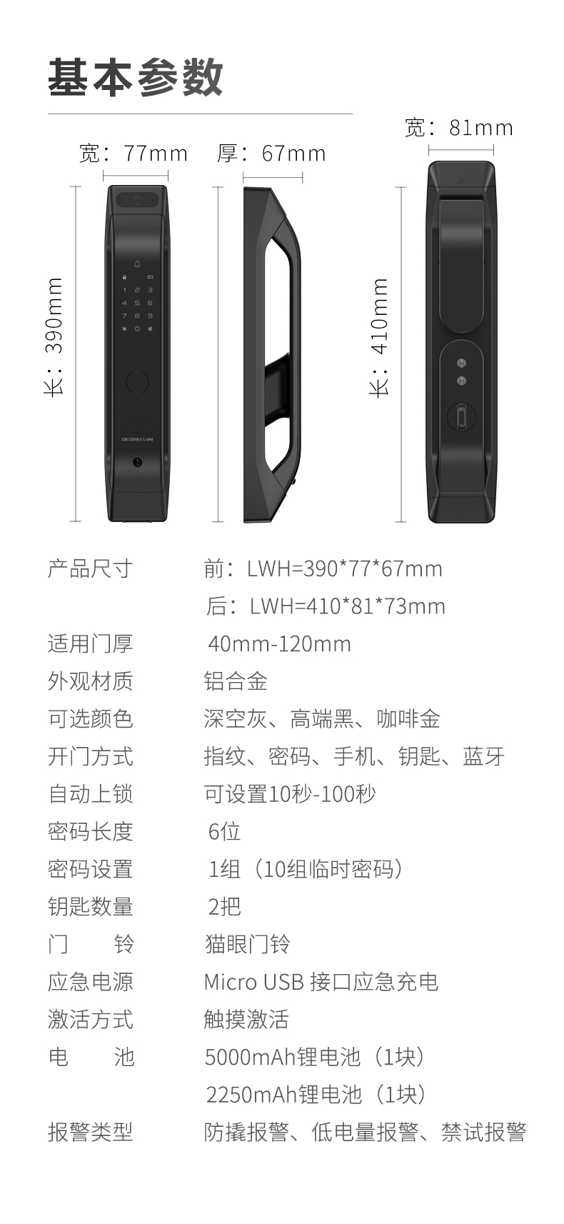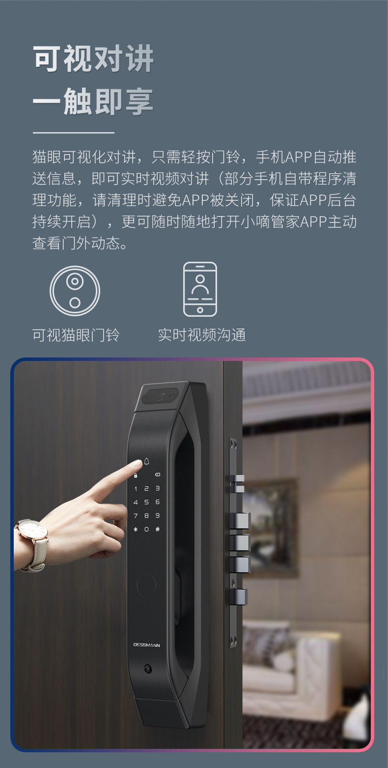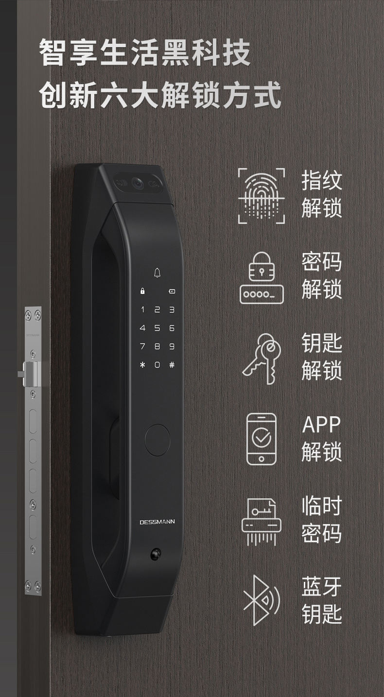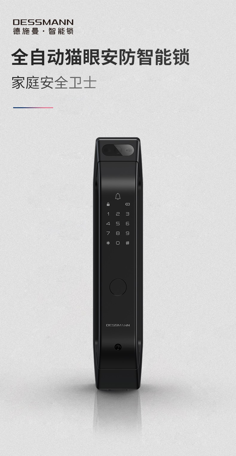 德施曼(DESSMANN)全自動(dòng)智能鎖指紋鎖密碼鎖防盜門鎖 電子鎖智能門鎖門禁鎖 貓眼 免費(fèi)安裝(Q5M)高端黑